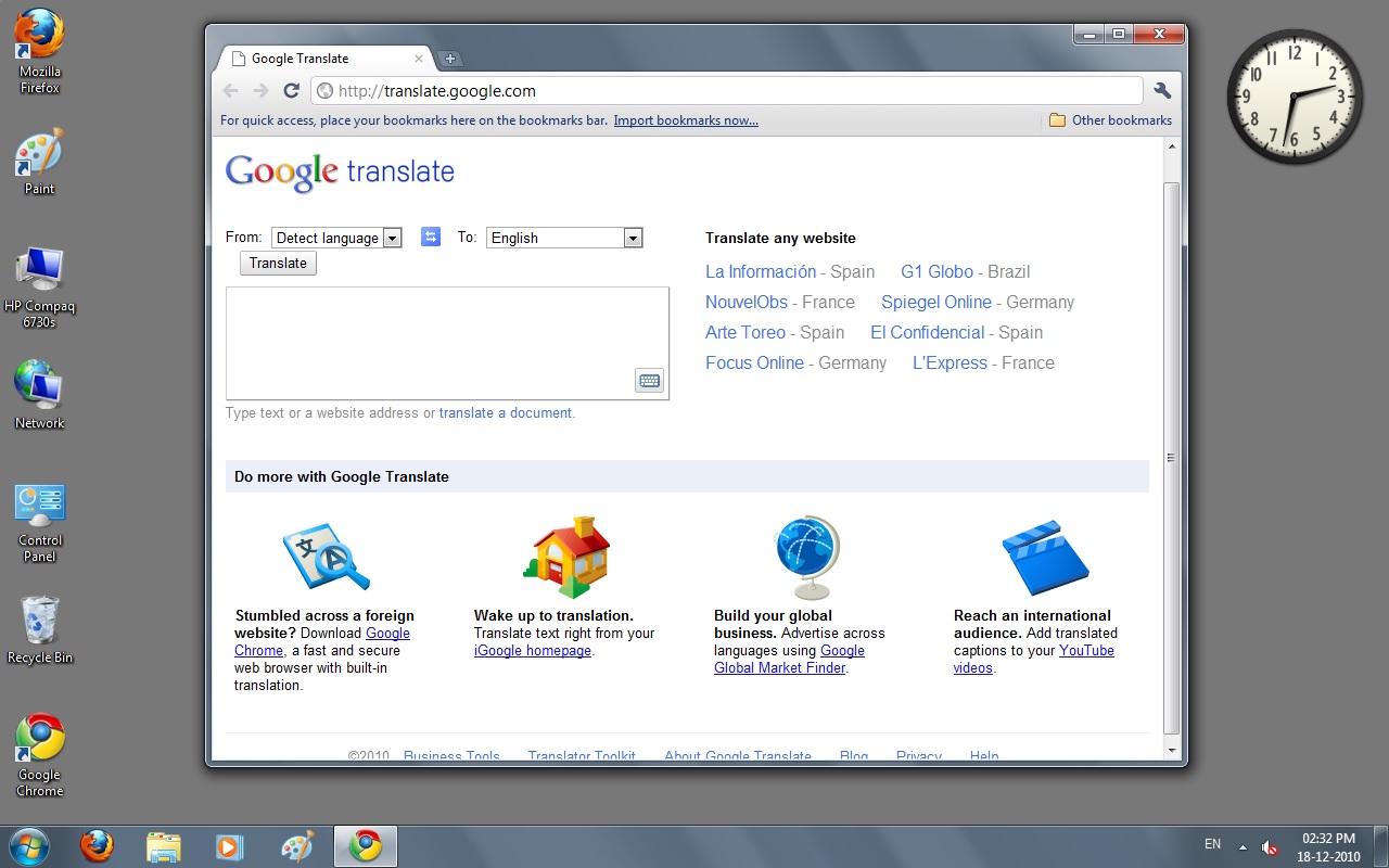 Google Translate on 18 December 2010