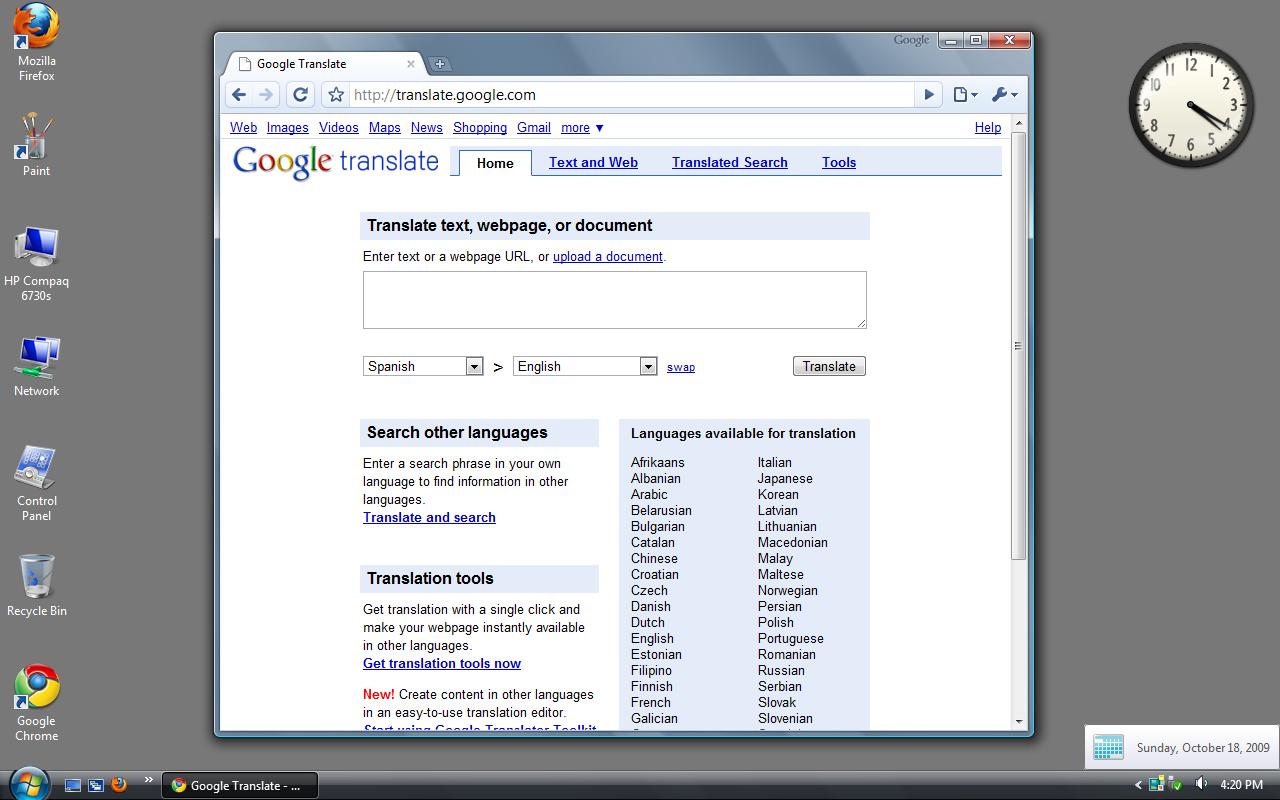 Google Translate on 18 October 2009
