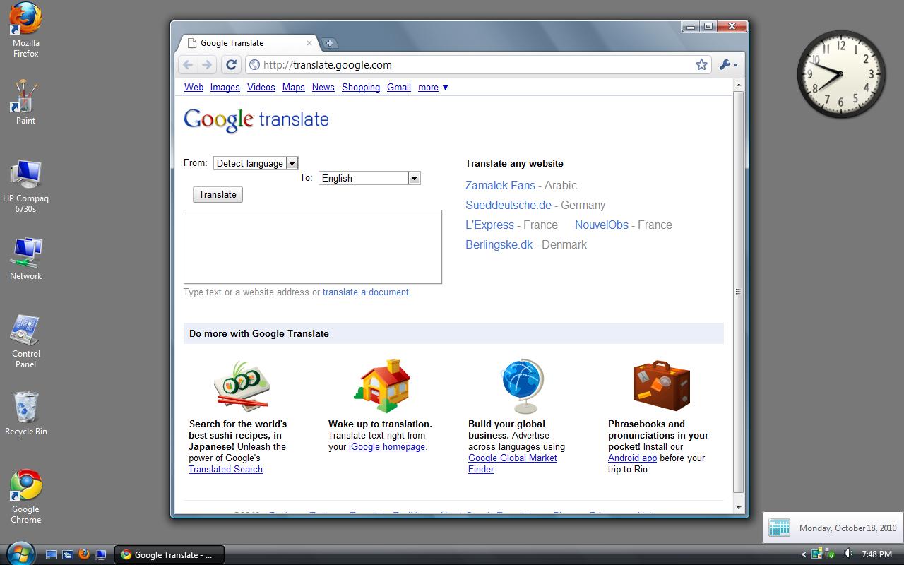 Google Translate on 18 October 2010