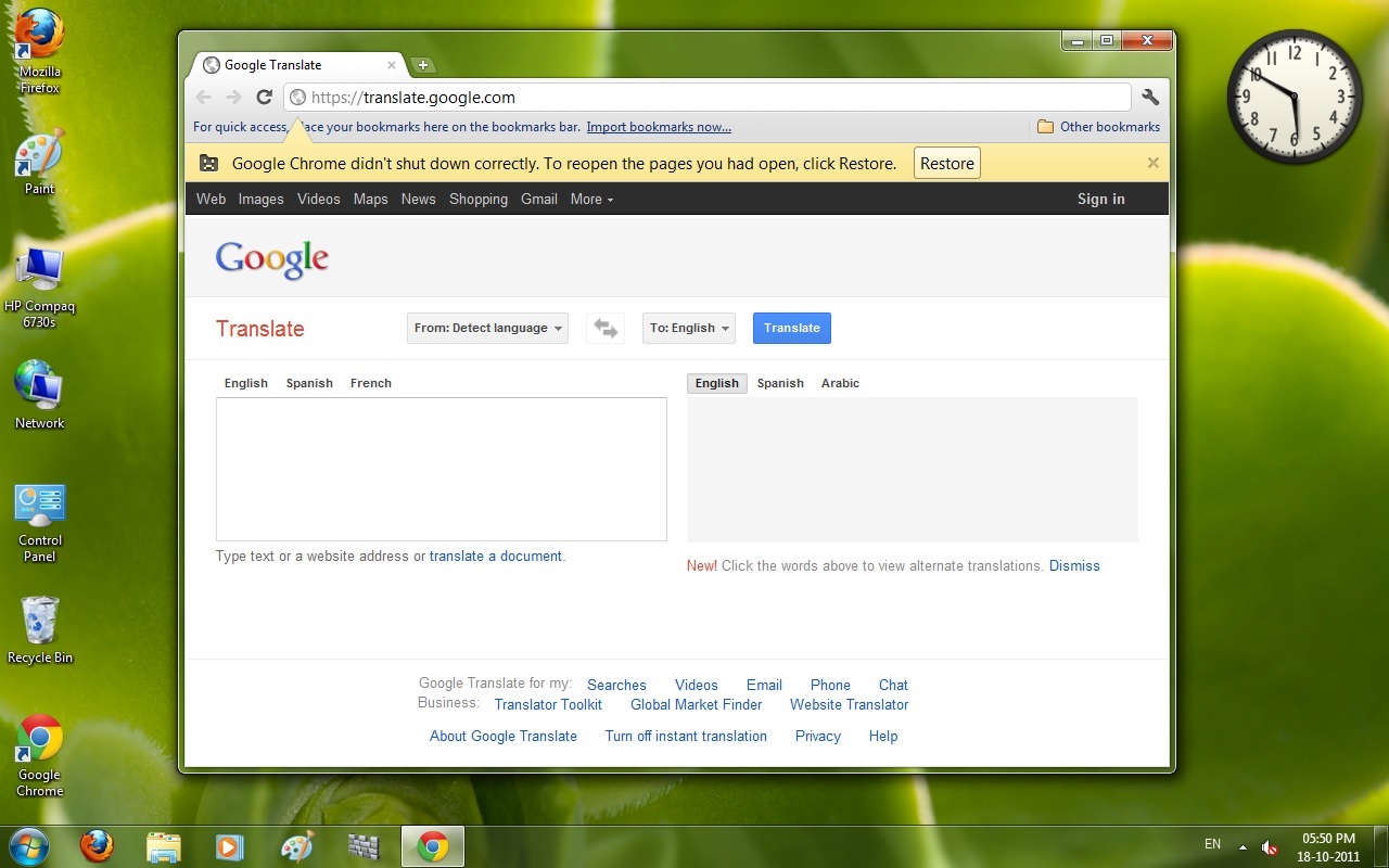 Google Translate on 18 October 2011